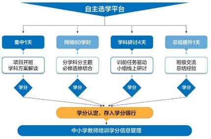 学分互认是教育部积极倡导的管理办法,各省区虽有作为但效果不佳。我们充分考虑自主选学对教师成长与学业管理的更灵活要求,把项目设计与学分管理紧密结合,采取了三个方面的政策与策略建构:一是政策上自主选择学结果纳入区县培训计划、纳入年度学分考核范畴、认可考评合格学员获得的学分;二是省区出台教师参训学分管理办法,使学分记载有法可依、学分认定有章可循;三是建设好学员学分信息管理平台,能依据项目方案,准确记载学员学分数据与信息,使学分转换准确无误。