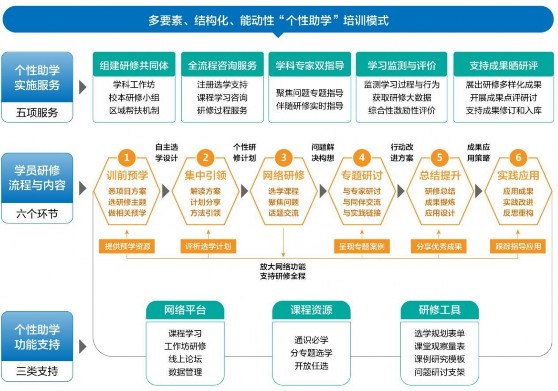 在本轮跨域试点基础上,探索创新的“八环递进”的自主选学整体样态、四步式自主化的选学程序、“集中-网络-校本”混合研修“1841”模式、四位一体的支持保障机制等均属
