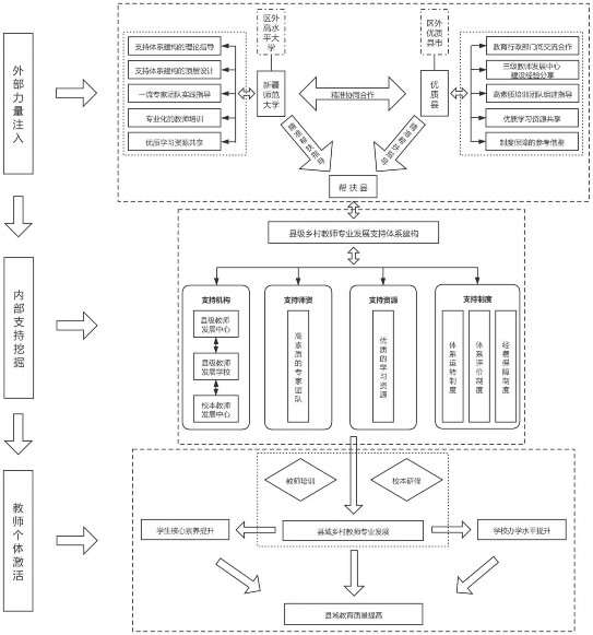 基于此,我们认为,构建县级乡村教师专业发展支持体系需要外部推动(协同机制)、,从而实现县域教师专业发展支持体系建设与促进教师专业发展融合共生。