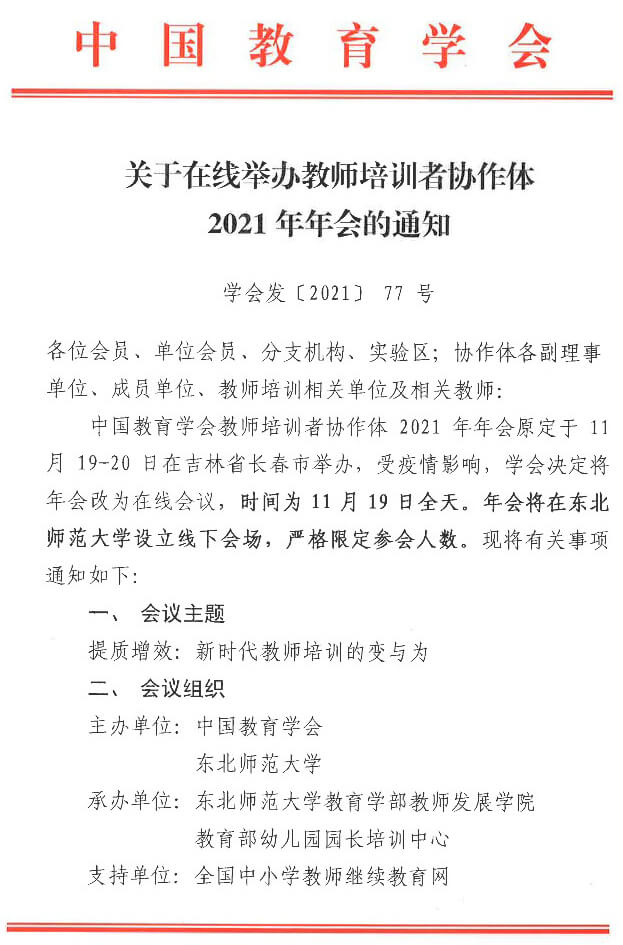 中国教育学会教师培训者协作体官方通知